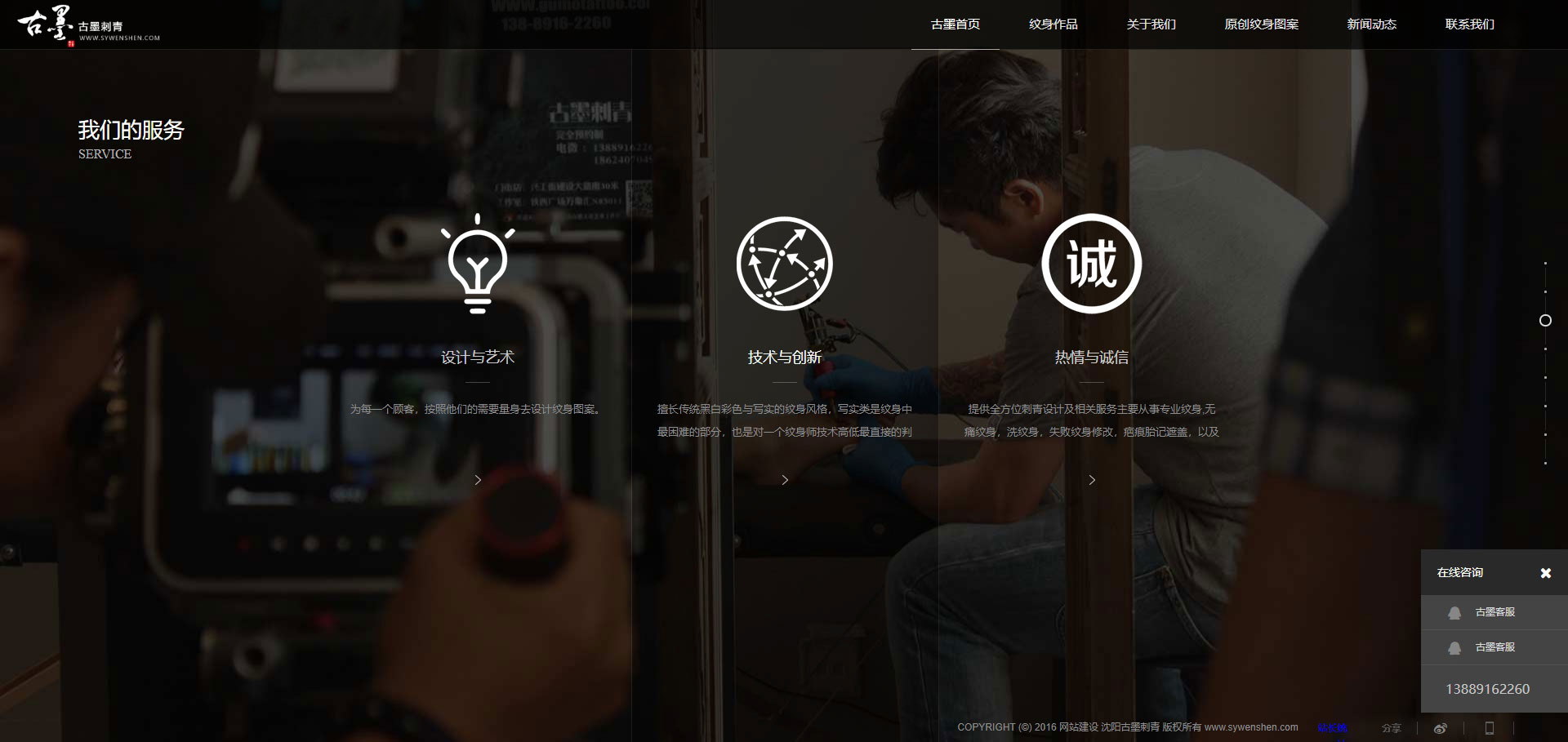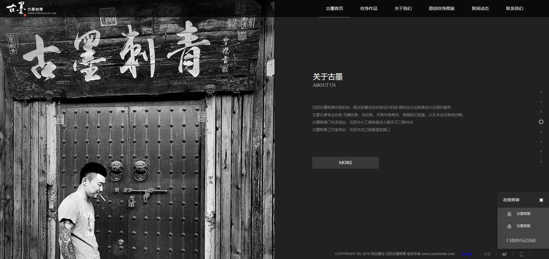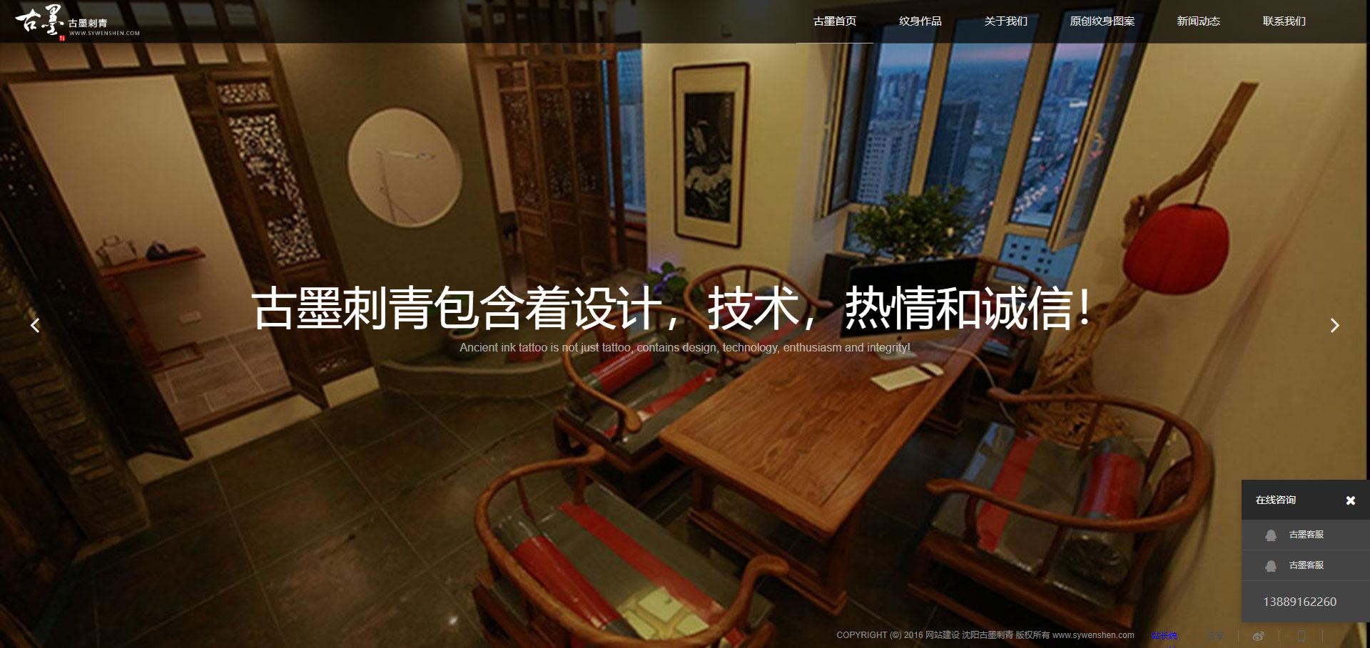 沈陽古墨刺青紋身機構---是沈陽著名的紋身設計機構 提供全方位刺青設計及相關服務 主要從事專業紋身,無痛紋身,洗紋身,失敗紋身修改,疤痕胎記遮蓋,以及專業紋身培訓等。