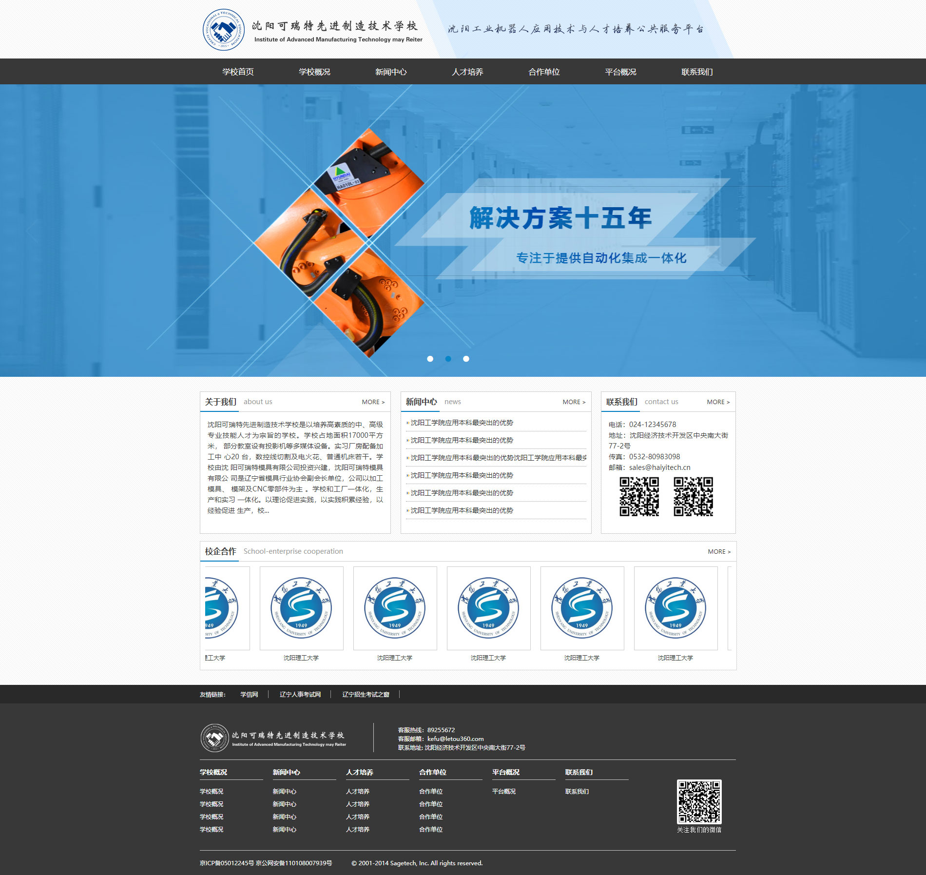 沈陽可瑞特先進制造技術學校是以培養高素質的中、高級 專業技能人才為宗旨的學校。學校占地面積17000平方米, 部分教室設有投影機等多媒體設備。實習廠房配備加工中 心20 臺,數控線切割及電火花、普通機床若干。學校由沈 陽可瑞特模具有限公司投資興建