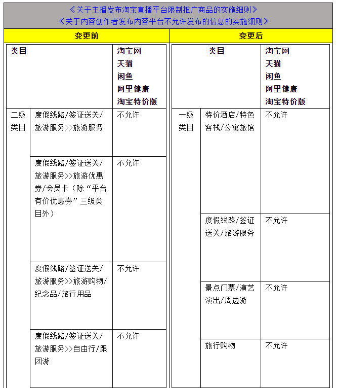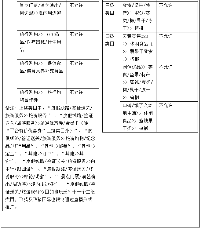 1、新增4個一級類目,2個二級類目,1個三級類目,3個四級類目限制通過淘寶直播平臺推廣商品,